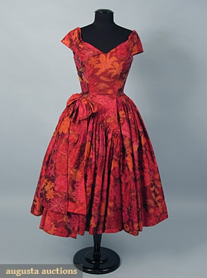 GALANOS CHINE PRINT SILK PARTY DRESS, 1950s