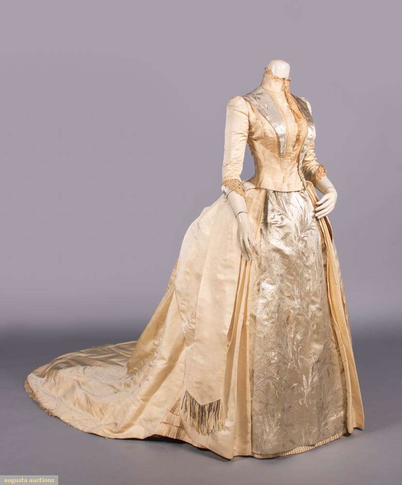 PATTERNED LAME’ SILK & FAILLE DIRECTOIRE WEDDING GOWN, 1885