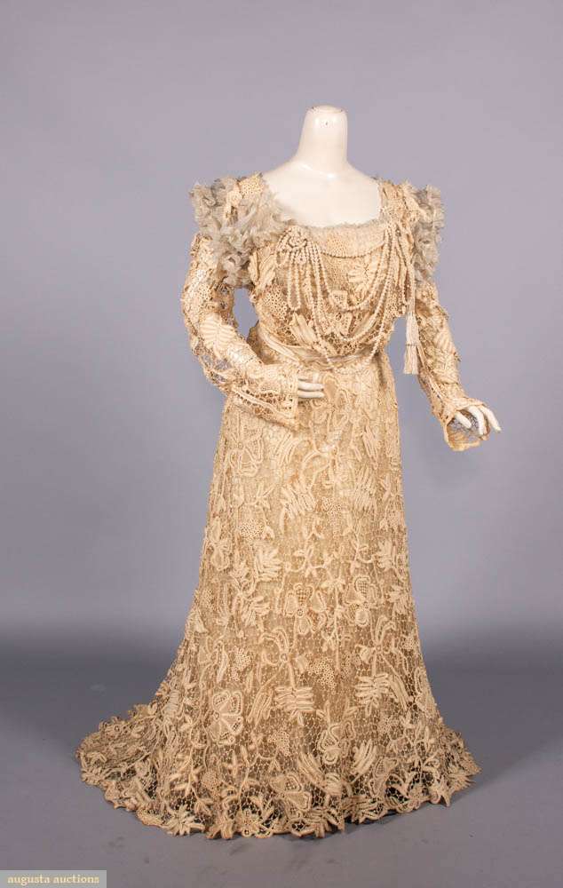 TAPE & NEEDLE LACE TEA GOWN, c. 1900