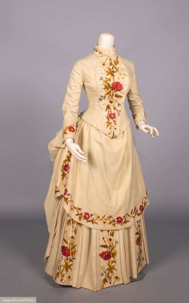 HAND EMBROIDERED WINTER DAY DRESS, c. 1883