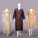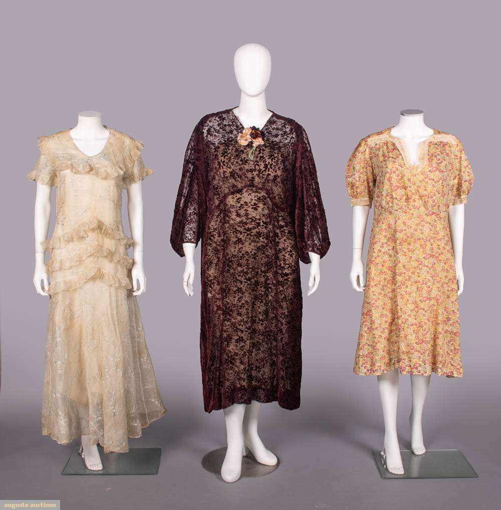 SILK & COTTON PARTY OR DAY DRESSES, 1930-1940