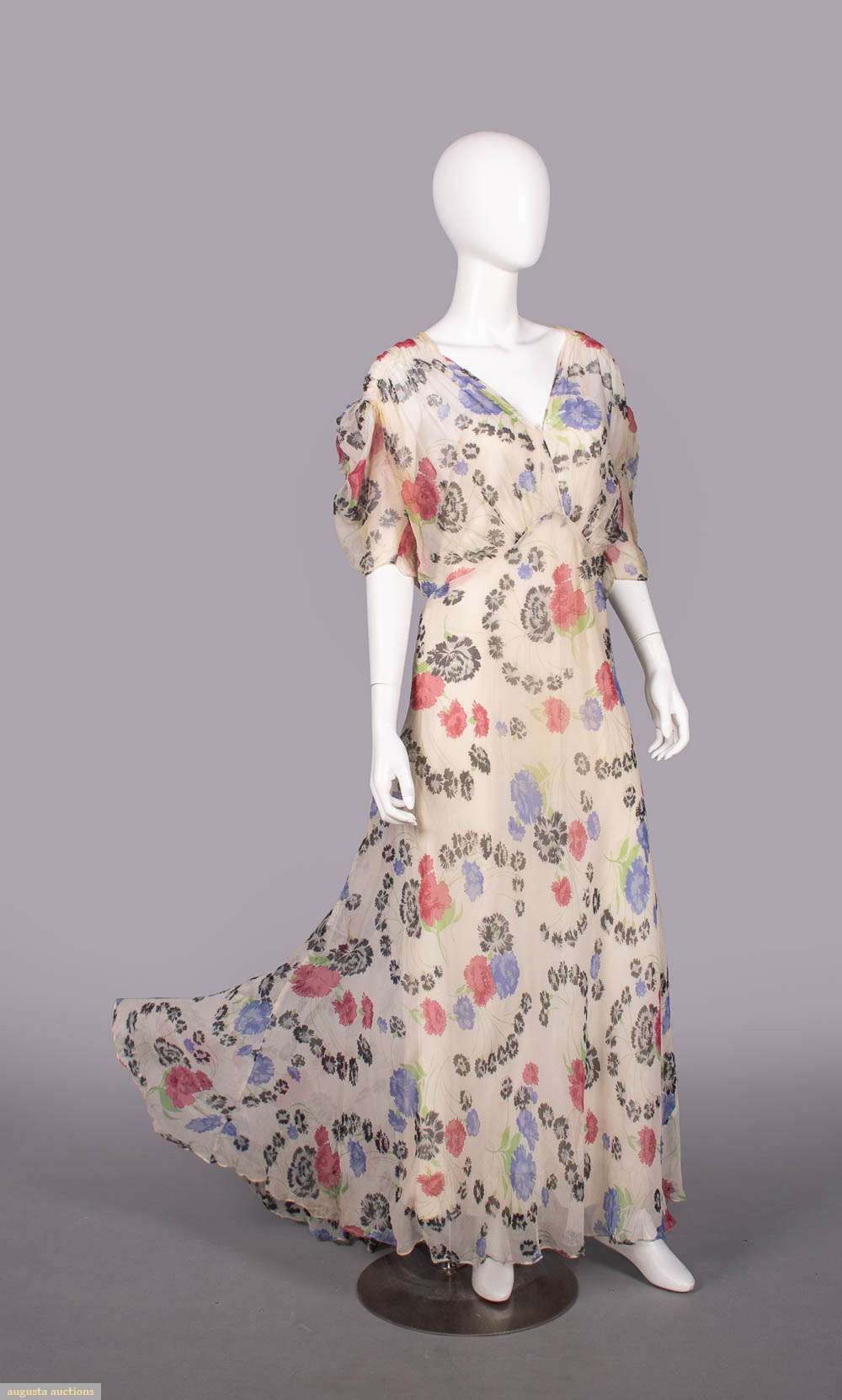 PRINTED CHIFFON GARDEN PARTY DRESS, 1930s