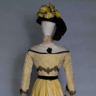 YELLOW SILK PROMENADE DRESS & HAT, c. 1900