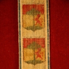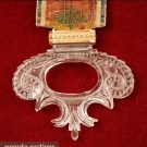Ribbon having a repeating pattern of heraldic shield w/ rampant lion and tree, in green, red, gold, and blue, terminating w/ cut crystal and gold mounted pull, 1.75" x 66", & pull 2.75" x 3.12", excellent.
