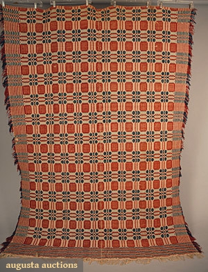 OVERSHOT WOOL & COTTON COVERLET, 1840s