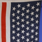 Printed cotton, 45 stars w/ hand sewn eyelets, signed Joseph A. Allen, 17" X 29.5", excellent.