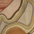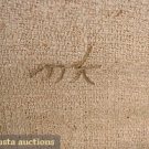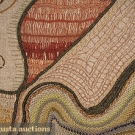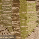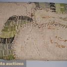 Handwoven natural linen ground, linen, wool & hemp yarns worked in embroidery, macrame, crochet & couching, signed "MK", given by the artist to her close friends, the parents of consignor, 51" X 70.5", excellent.