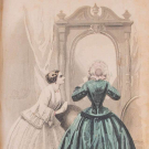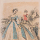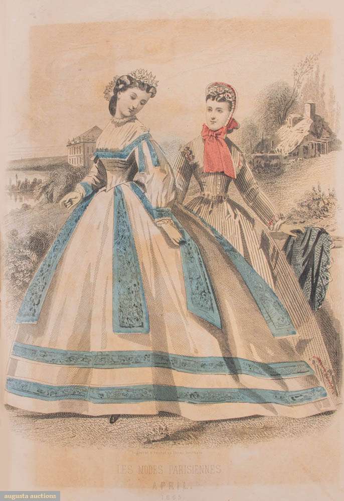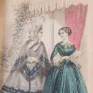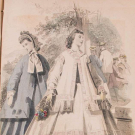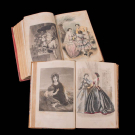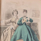 1 “Peterson’s Magazine”, January-December 1855, Philadelphia, 6” x 9.5”, fashion plates present for Feb - Dec, (cover/spine worn & partially detached, spine taped, first few pages unbound, one page cut, yellow & foxing to plates & pages, few minor tears & creases at corners) Cover/binding poor, pages fair-good; 1 “Peterson’s Magazine”, January-December 1865, Philadelphia, 6” x 9.5”, fashion plates present for Feb - Dec, (spine taped at flyleaf, light wear to cover, yellowing to plates, some writing on plates, few tears, light yellowing & foxing to page edges) good.