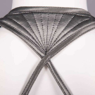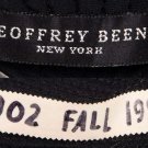 Black silk jersey evening dress w/ grey satin w/ metallic top stitched quilting, label “Geoffrey Beene, New York”, inked label “1902, Fall 1990”, B 33”, W 25”, L 60”, (light wear) Excellent. Identical dress donated by Geoffrey Beene to the Metropolitan Museum of Art in 2001, accession # 2001.393.99. Provenance: sold 11/20/19 Hindman’s Property from the Geoffrey Beene Archive, lot 192, Archive Inventory Inventory No. #1467.