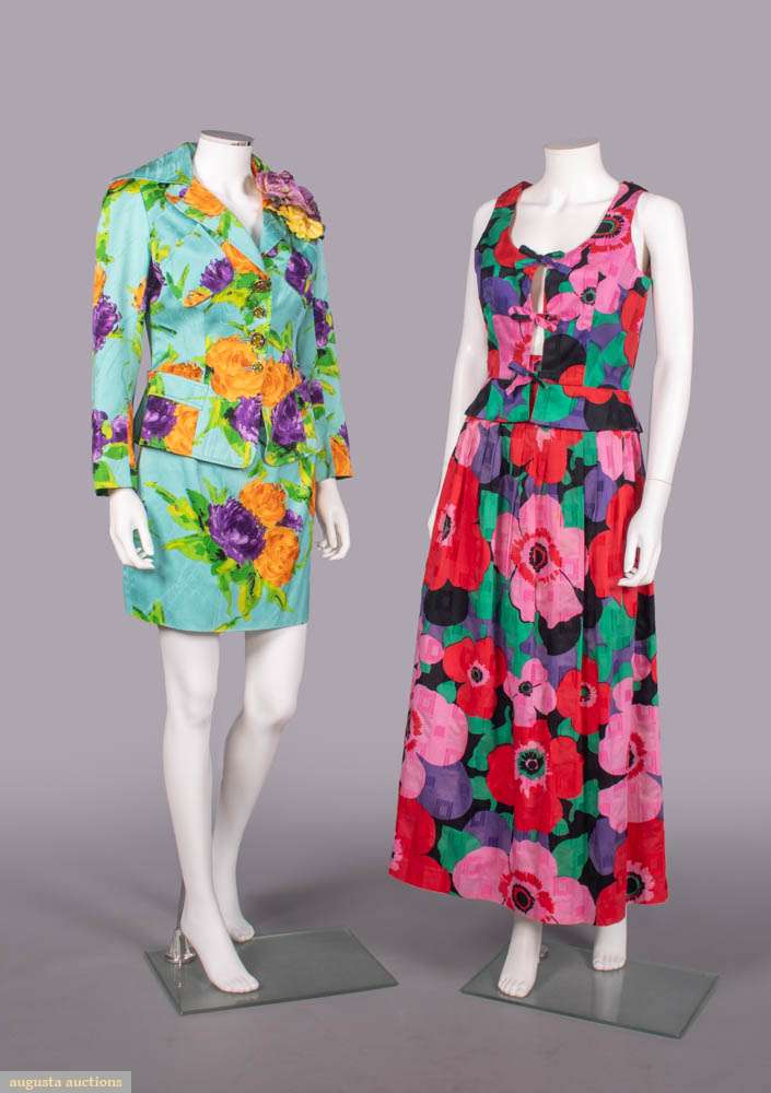 CHRISTIAN LACROIX & LOUIS FERAUD PRINTED FLORAL ENSEMBLES, 1970-1990