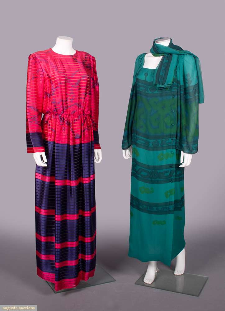 BLASS & TRIGERE PAINTED SILK EVENING DRESSES, USA, 1970-1980s