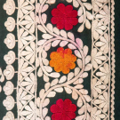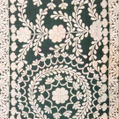 1 embroidered mans cap from, Central Asia, circ. 20”, wd 7”, H 2”, (minor fading, light wear at brim) Excellent; 1 warp Ikat silk scarf w/ metallic weft stripe, India, 43” x 72”, (12” repair near hem, tiny-0.25” holes w/ few to 0.5", light discoloration) Good; 1 dark green silk w/ hand embroidery, India, 34” x 73”, (light wear to embroidery w/ few sm pulls, varying color bleed/discoloration, 2.5” x 2” repair at corner, few tiny-0.25” holes especially at border, few sm spot stains) Good.