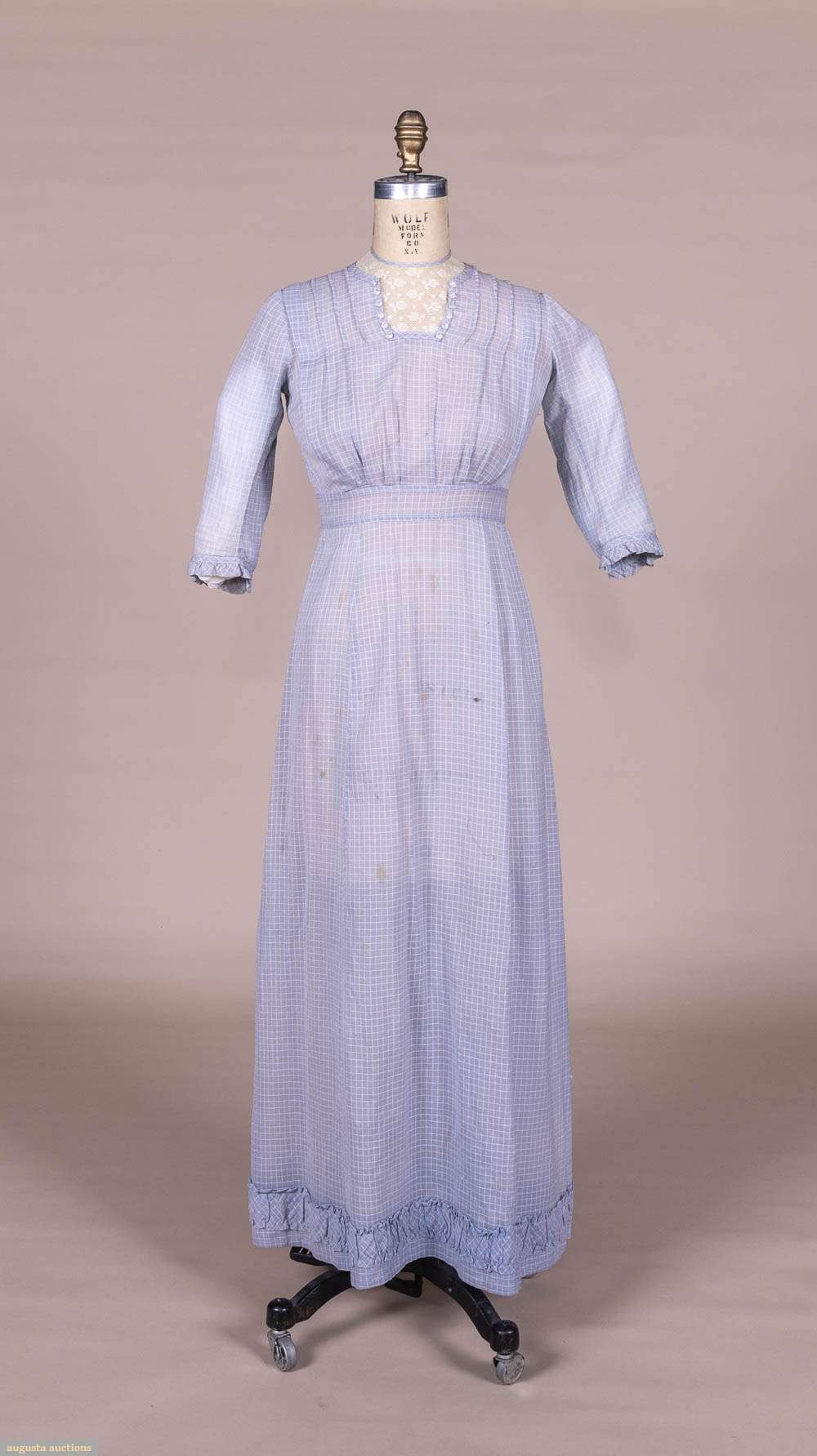 BLUE WINDOWPANE DAY DRESS, 1910s