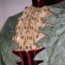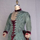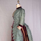 SAGE GREEN BROCADE VISITING DRESS, LATE 1880s