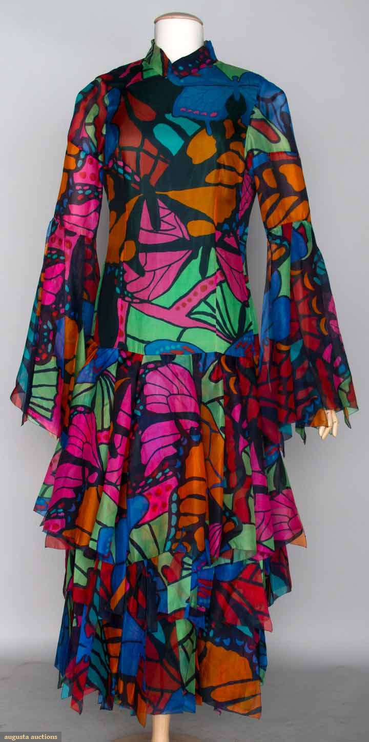 PIERRE CARDIN BUTTERFLY PRINT DRESS, 1970-1973