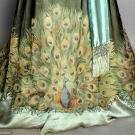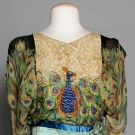 Peacock tail printed silk chiffon w/ embroidered & beaded peacock on bodice, Paris label "Weeks".