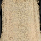 3 lace evening gowns: 1 white, 1 pink & 1 navy; 1 brass-studded navy cocktail dress; 1 plum silk jacket w/ silver soutache.