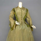 1 1870 2-piece striped green & beige w/ green silk fringe; 1 1890s jet beaded black silk mantle.