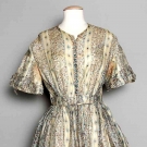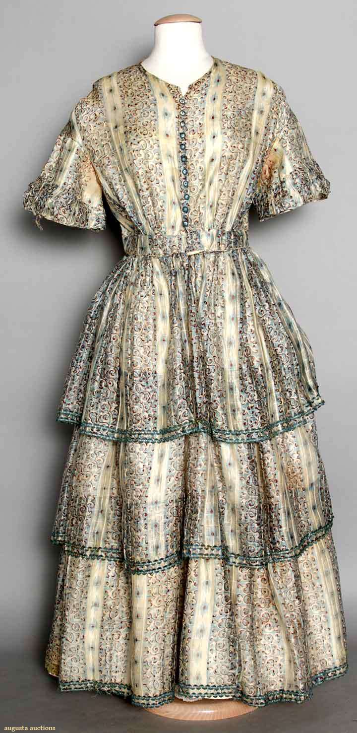 2-piece, fine gauze w/ patterned stripes in blue & maroon.