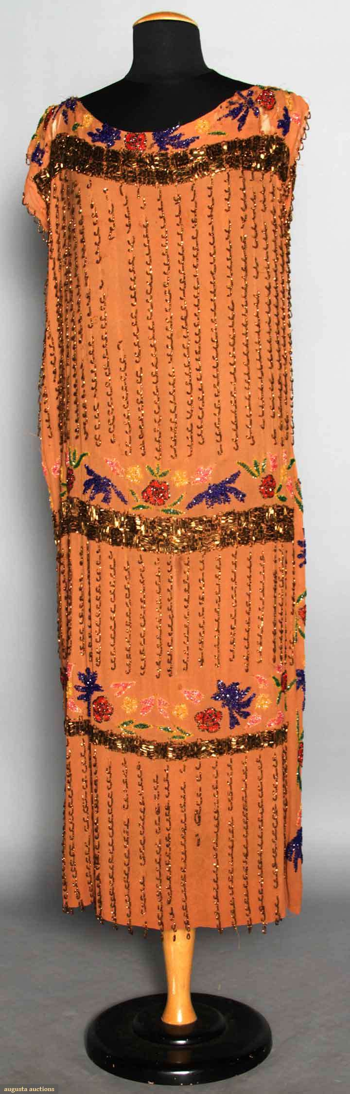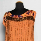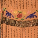 Cocoa brown silk crepe w/ copper carnival glass beads & colorful floral beading.