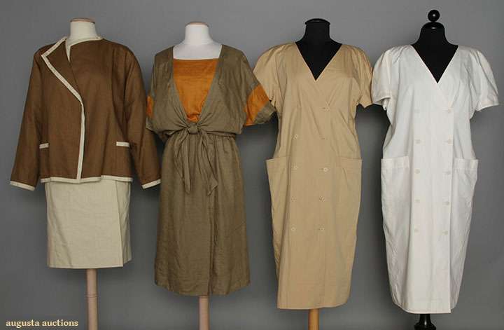 1 green & pumpkin linen, 1 white & 1 khaki cotton; 1 white & brown skirt & jacket.