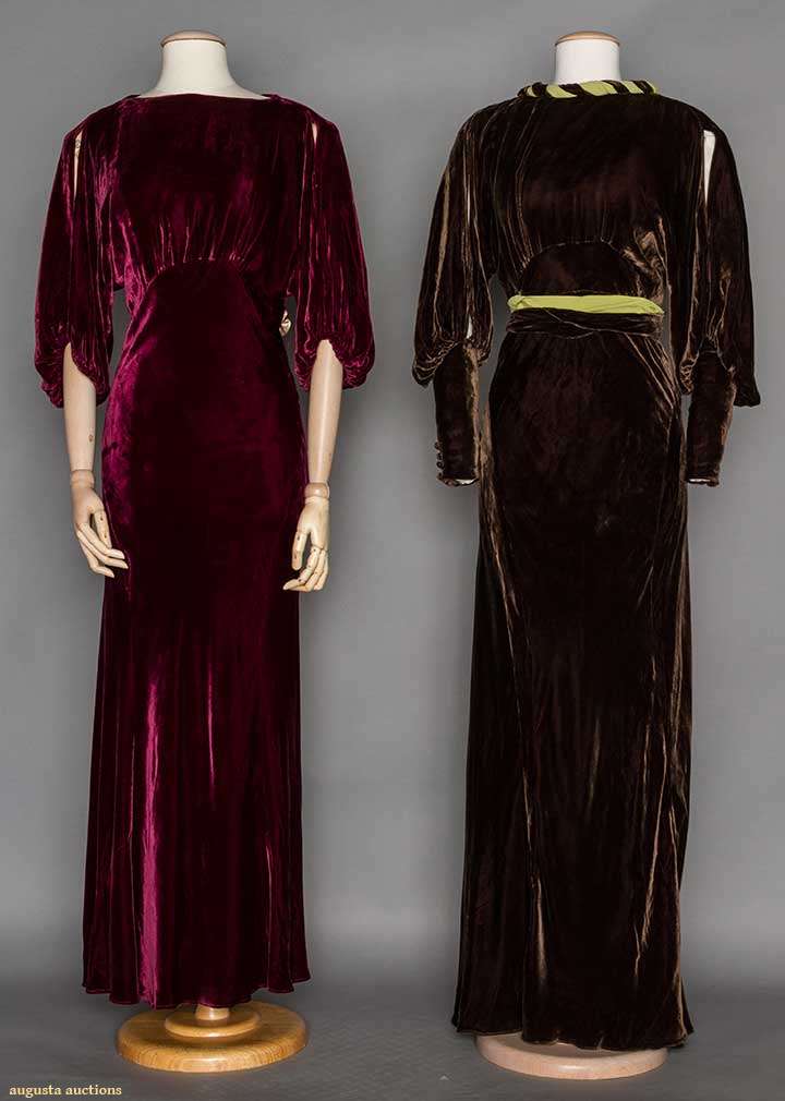 TWO SILK VELVET EVENING GOWNS, 1935-1945