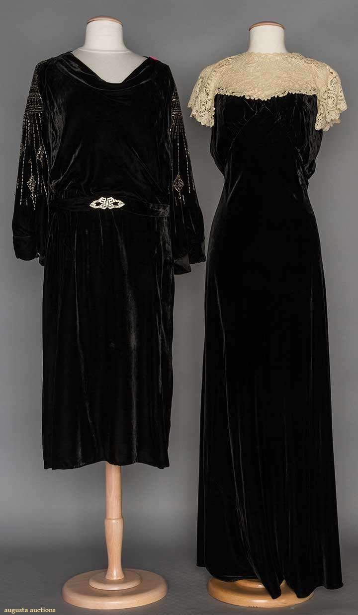 TWO BLACK VELVET EVENING GOWNS, 1925-1935