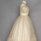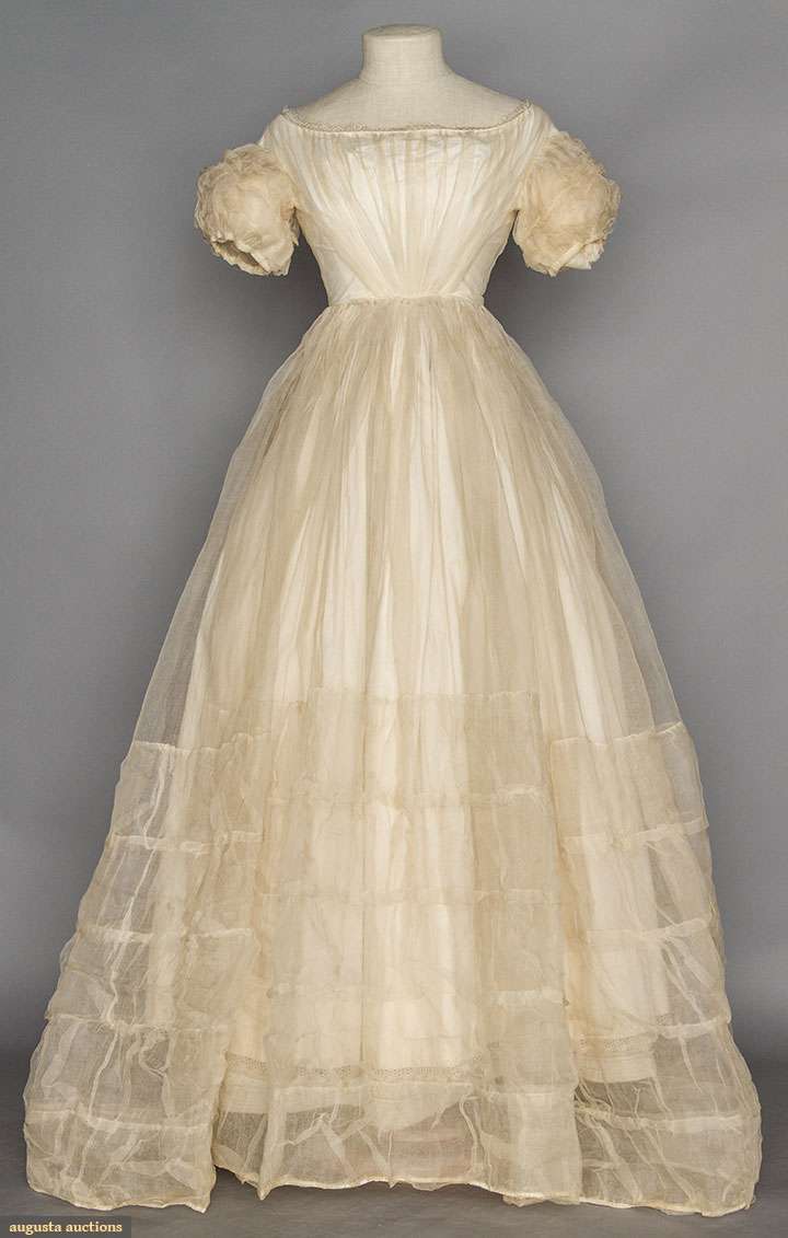 WHITE ORGANDY BALL GOWN/WEDDING GOWN, 1850s