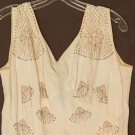 1 green floral day dress; 1 rhinestone & bead trimmed cream crepe evening dress & 1 grass green velvet jacket, vg-exc