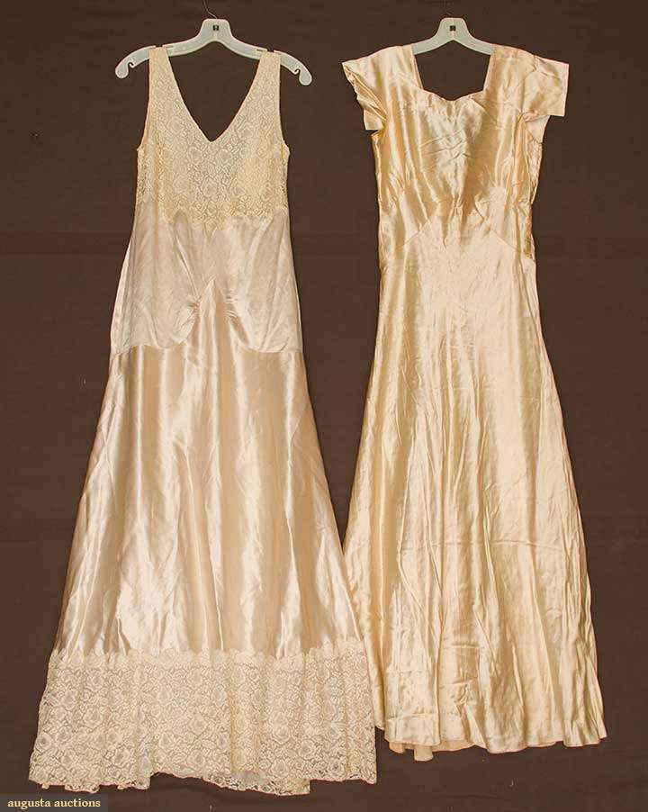 2 CREAM SATIN EVENING DRESSES, 1930s