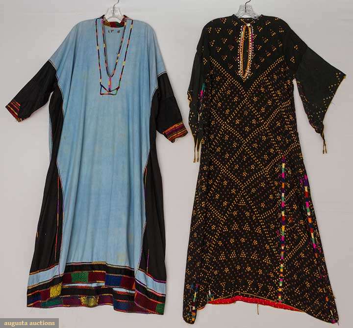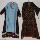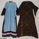 1 blue w/ black side panels, embroidered cuffs & hem, vg & 1 black w/ yellow & brown tie dye pattern & embroidery, fair