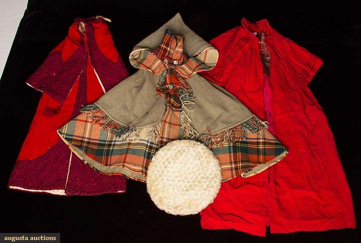3 wool capes & 1 white fur tam, vg