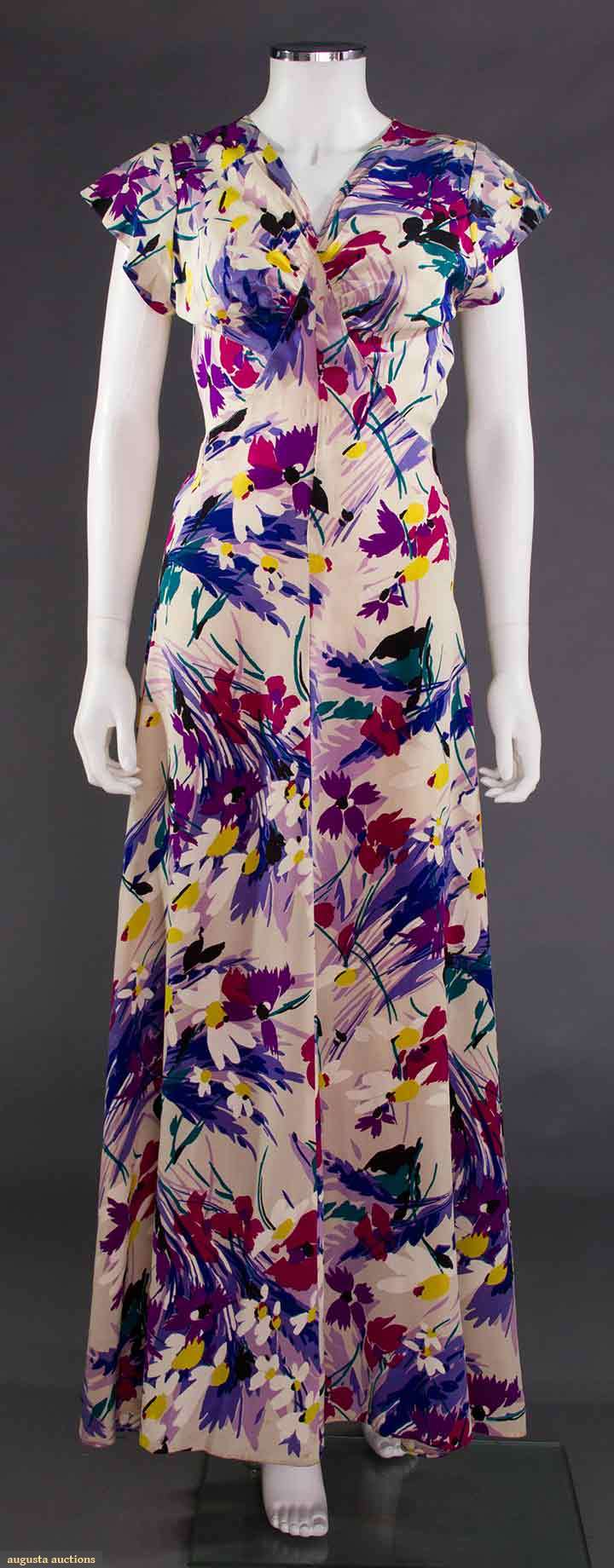 PRINTED SILK SUMMER GOWN, c. 1940