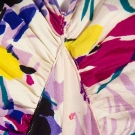 Painterly floral print in shades of violet, yelllow & blue, B 36", W 26", L 59", (very small stains at left H & right side) very good.