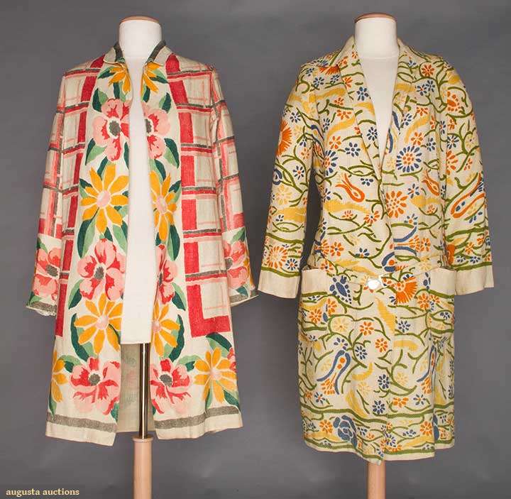 TWO STENCILLED BEACH ROBES, 1920-1930s
