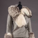 1 B&W wool maxi dress & matching jacket w/ fox fur trim, B 34", W 30", L 55", (hole on lower right side) fair; 1 taupe wool cable knit maxi dress, L 52", (large brown stain on lower back) fair; 1 black knit sweater w/ balloon sleeves & matching white knit skirt, B 38", W 28", Skirt Length 44", excellent.