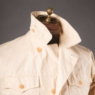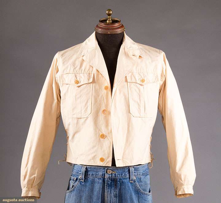 Sand poplin, side laces, CH 44", L 21", label "Veste de Ski Lutteurs Windbluse", (faint back stains) very good.