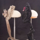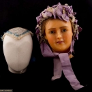 2 1860's: 1 lace w/ lilac ribbons, 1 gold mesh w/ white & blue trim; 2 late 19th C afternoon bonnets, 1 black horsehair w/ straw trim, 1 fine tan straw w/ straw lace & velvet ribbons; all very good - excellent
