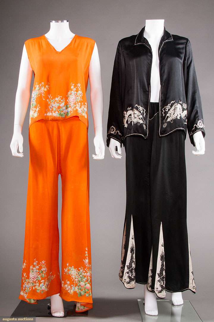 2 LADIES' SILK PJ SETS, CHINA, 1930s