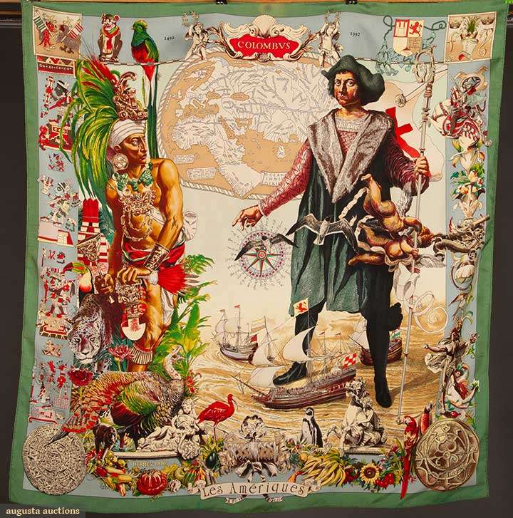 OLIVER for HERMES "LES AMERIQUES" SCARF, FRANCE, 1992