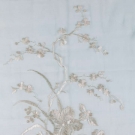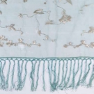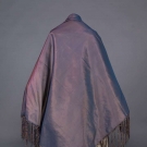 1 shear baby blue silk wrap, white silk floral embroidery and fringed ends, 24.5" x 108", (tiny & small moth holes), very good; 1 silk wrap, plum silk taffeta, fringed, 68" x 70", (stains & pinholes), fair. MCNY.