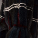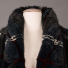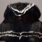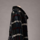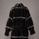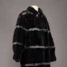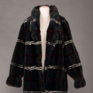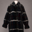 Midnight blue & cerulean green mink evening coat w/ crimson & white plaid, self-belt, elastic cuffs & clip & eye closure, L 45”, excellent.