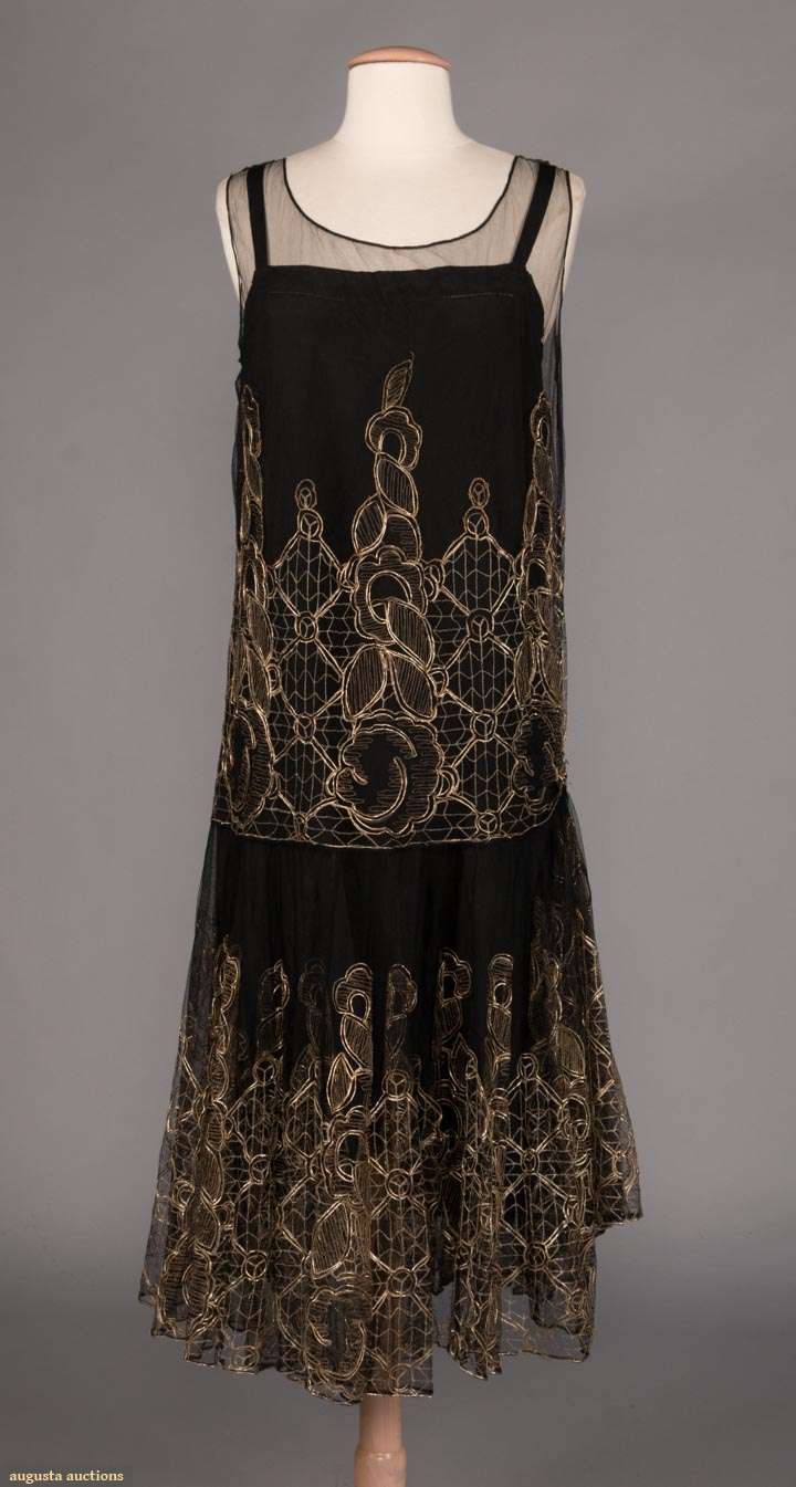 GILT EMBROIDERED DECO EVENING DRESS, LATE 1920s