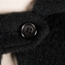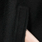 Black full length w/ wide lapels, button & tab closure at CF, arm slits at hip, interior silk patch pocket right side, "Galanos", W, L 49", excellent. (Photos lightened for visibility) excellent.