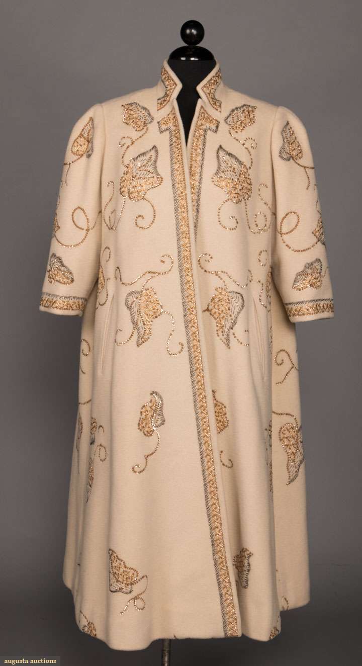 GOLD EMBROIDERED CASHMERE EVENING COAT, mid 20TH C.