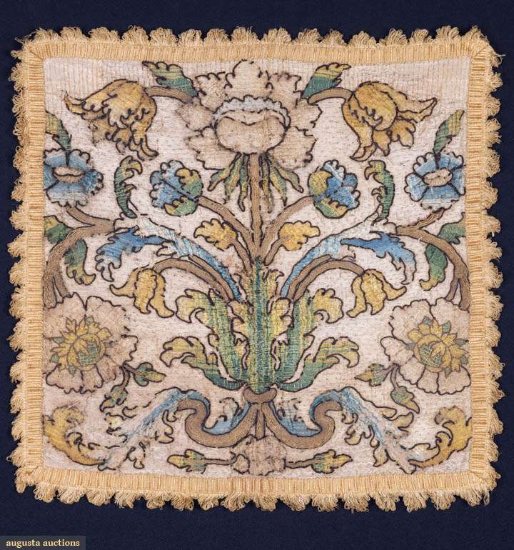 LAID & COUCHED SILK EMBROIDERED CUSHION COVER, LATE 17TH C