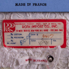 2 lengths of 3-tiered white lace, label "Made in France", Wd 4.5", total L 45+ yds, (4 lengths, each 401"-413", patches of staining & fraying); 1 cellophane wrapped lace, label "Roth Import Co. Inc.", Wd 8.5", L 10 yds; 1 white floral w/ self fringe edges, Wd 5.75", L 19+ yds, (4 legnths, each 83"-256", 4" section cut from 1 end); 2 matching wide lengths, Wd 13.5", total L 14+ yds, (unevenly cut) all very good-pristine.