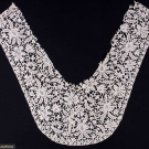 1 lace length of Italian needlelace yardage, L 9.5 yds, Wd 4.5", (light stains); 1 small square collar of Italian needle lace, inner circ. 22", outer 33", Wd 3", (broken brides); 1 chemical lace cuff, circ. 19"-21", Wd 6"-8", (broken brides, worn/stained thread knots at edge); 1 chemical lace large collar, inner circ. 40", outer 60", Wd 11", (inner edge raw, broken brides); 1 large circular flounce of chemical lace, inner circ. 62", outer 83", Wd 11", (broken brides, spot stains); t/w 4 lace pieces, all good-excellent.