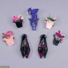 7 brooches all w/ findings stamped "Lea Stein Paris": 4 Potted Flower in black & white matte & pink snakeskin pots w/ multicolored snakeskin flowers, 1.75" x 2.125"-2.25", (1 w/ minor discoloration & 1 deep scratch, 1 w/ minor warping, black w/ yellow& purple w/ bubbling on back) 2 identical Art Deco Cicada in teal, pink & black, 1.25" x 3.5"; 1 purple snakeskin Famous Fox, 1.75" x 3.75", (pin loose & swiveling, warped patches on back of tail) ( all w/ light scuffs/scratches) all good- excellent.