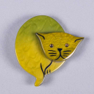 All w/ "Pavone" signature: 1 marbleized green ombre mouse, 1.875" x 2"; 1 marbleized green ombre oval cat, 2.5" x 2.25"; 1 marbleized purple leaping cat w/ orange wire limbs, 5" x 2", (tiny scuff & patches of sticky residue, tail wire loose); 1 turquoise seated cat w/ fuchsia head & black tail, 2.25" x 3.375", (tiny divots at edges); 1 chatoyant seated cat w/ green ombre head & black tail, 2" x 3.5"; 1 marbleized purple ombre seated cat w/ turquoise head & orange base, 2" x 4.25", (few glue smears on back), (all w/ light scratches &/or scuffs) all good- excellent.